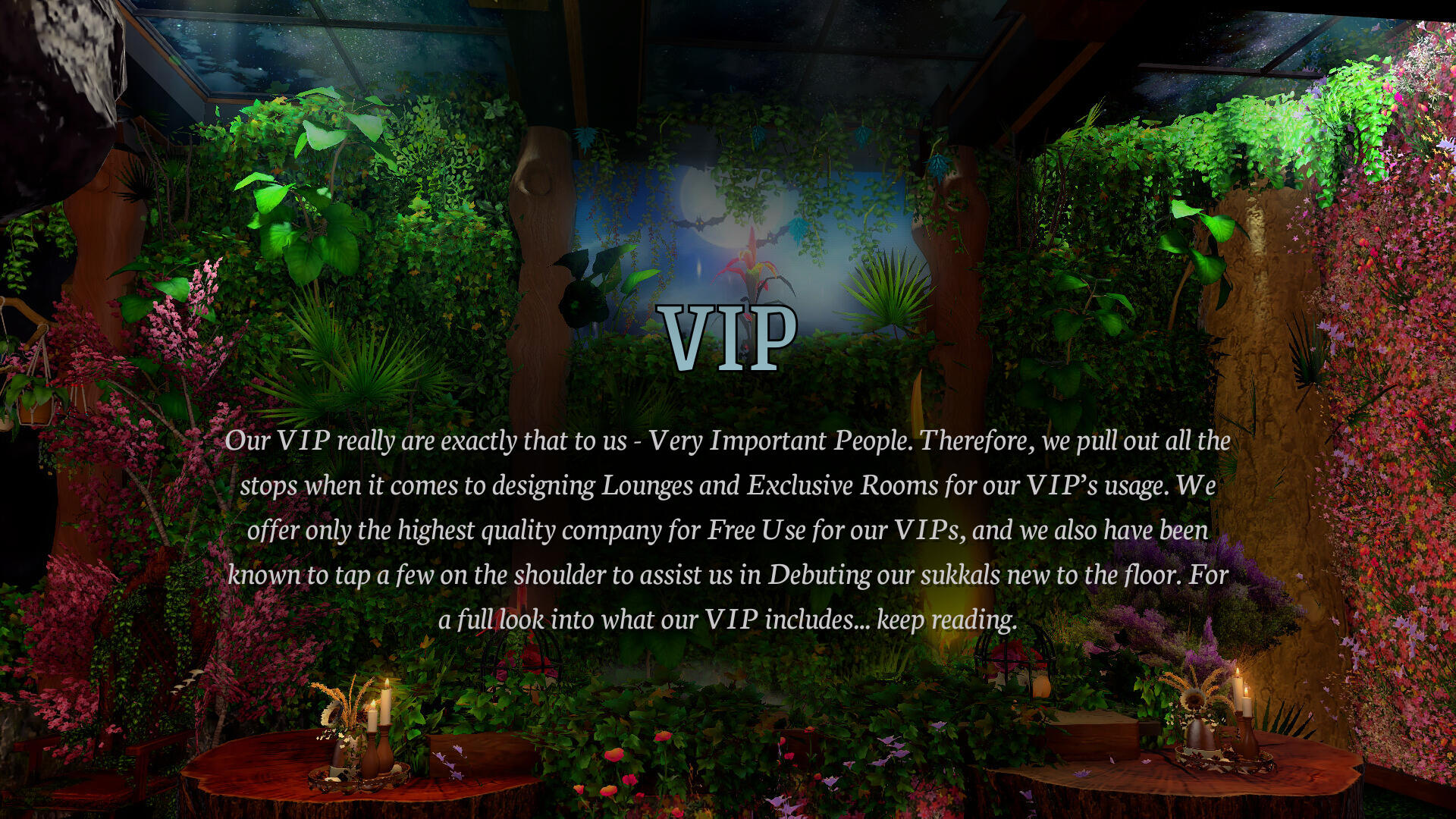 Our Sukkals are trained in the arts of pleasure and companionship to help you truly enjoy yourself to the fullest. Join the discord for a full listing of Sukkals and the services they provide!